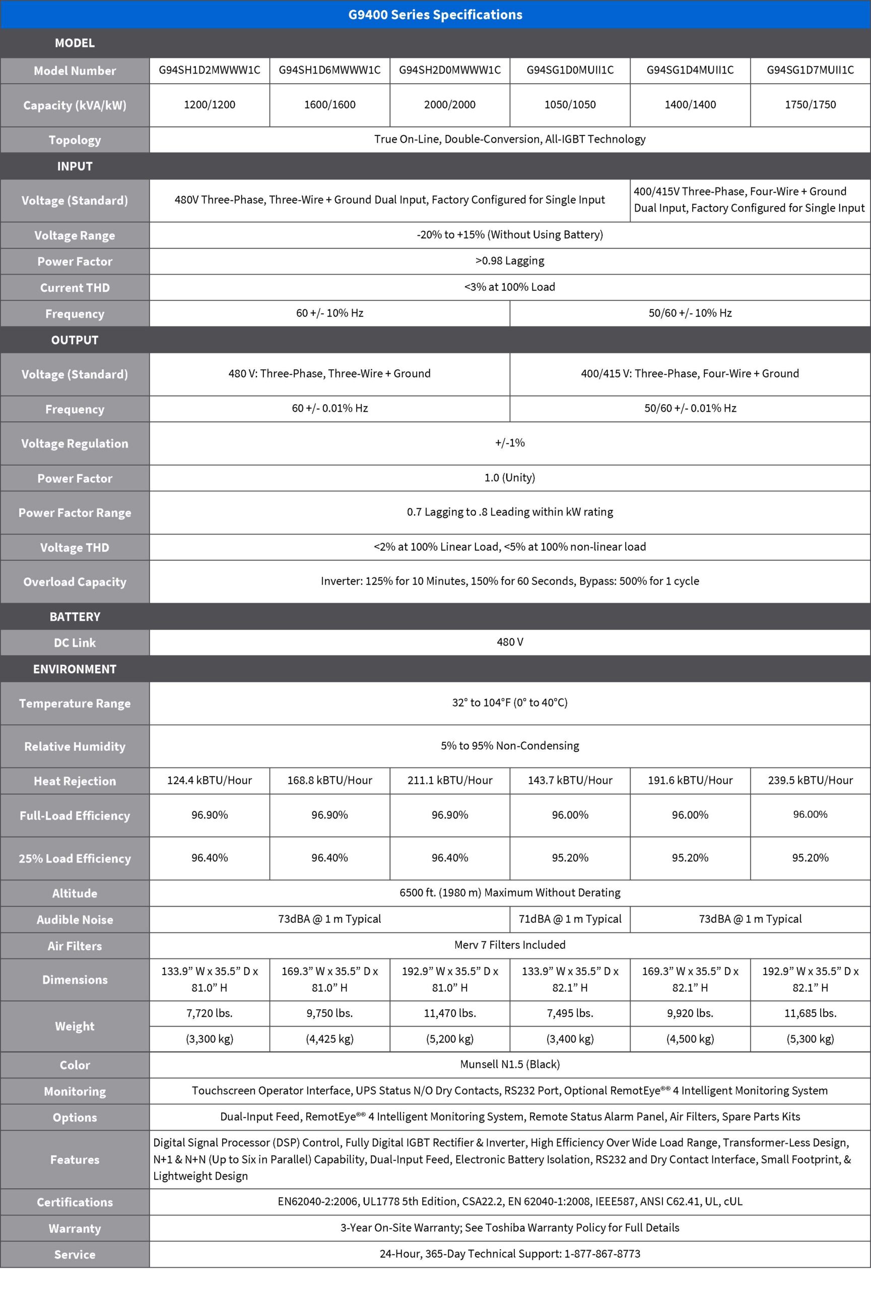 The Toshiba G9400 Series Uninterruptible Power System (UPS) elevates a modular design with exceptional efficiency, reliability, and performance compared to its predecessor the G9000 Series Mega Watt models. Incorporating the latest 7th generation Carrier Stored Trench Bi-Polar Transistor (CSTBT) IGBT technology, the G9400 Series offers high power density within a compact footprint and achieves 97% online efficiency across various loads. The modular design allows for built-in redundancy, making it an ideal choice for large Colocation or Hyper-Scale Data Centers worldwide.