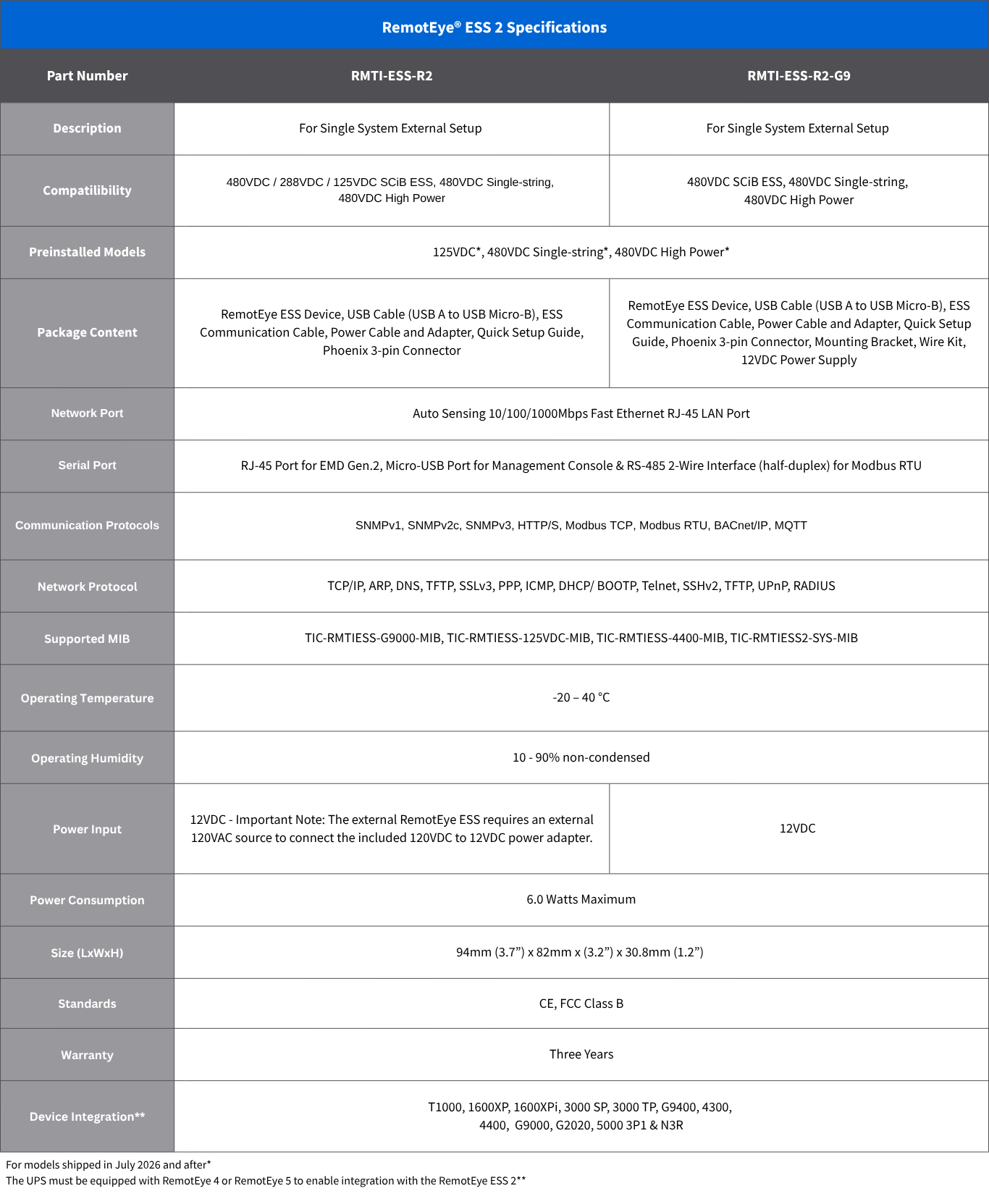 - Seamless integration with RemotEye® 4 or RemotEye® 5 that allows to view the UPS status.