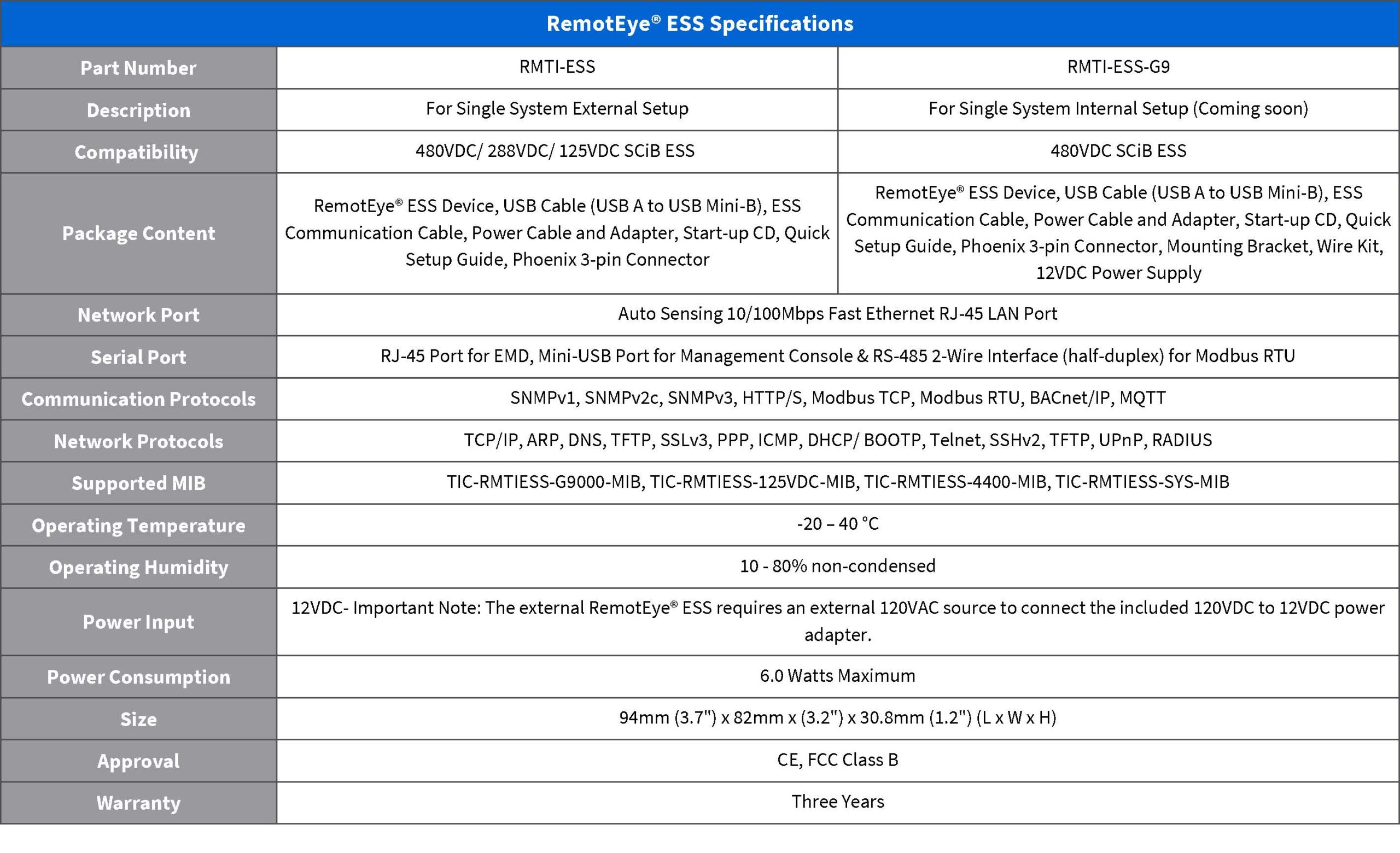 RemotEye® ESS IIoT (Industrial Internet of Things) network card is a complete monitoring solution for the Toshiba SCiB™ Energy Storage Systems (ESS). It is designed for easy integration to different management systems over the most common universal protocols to improve business uptime. It includes Ethernet and RS-485 (2-wire) interfaces to allow compatibility to different network architectures. With its embedded web server, it allows monitoring of the SCiB™ ESS in real-time without a management system and provides easy management of the RemotEye® ESS itself. The web app is accessible via any of the latest available web browsers.