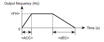 In [ACC: Acceleration time 1], set a time before the output frequency of the inverter reaches the value of [FH: Maximum frequency] from 0.0 Hz.