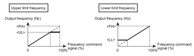 Set the upper limit frequency to decide the output frequency of the inverter.