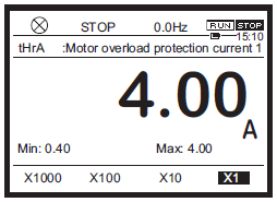 Parameter tHrA: Motor overload protection current 1