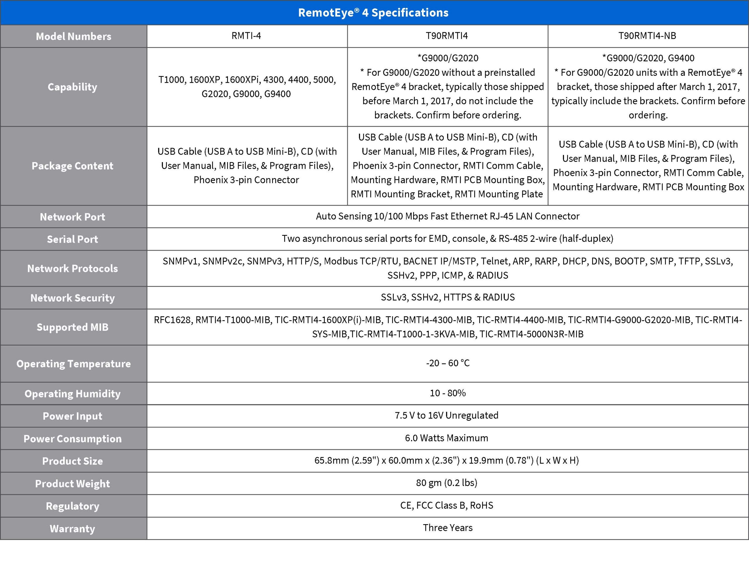 RemotEye® 4 IIoT network card is a cutting-edge UPS management tool designed for seamless control and monitoring of uninterruptible power systems over a network. It supports multiple communication protocols including SNMP, HTTP(S)/web application, Modbus TCP/RTU, and BACnet IP. With RemotEye® 4, network administrators receive instant email notifications in the event of a power outage and can initiate controlled shutdown commands to connected servers to safeguard against data loss. The platform includes a user-customizable dashboard, UPS Home Group, personalized reminders, a mobile-friendly web design, and a built-in firewall, all of which enhance its functionality and security.